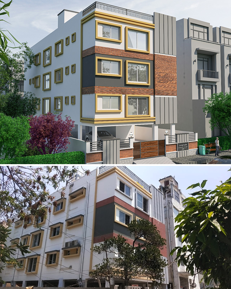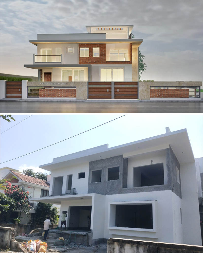 3D external views are conceptualized and finalized. Structural drawings are done based on the soil report. A final set of drawings with working plans, elevations, sections, doors /window details, grill details, electrical and plumbing drawings are drafted and handed over to the client.